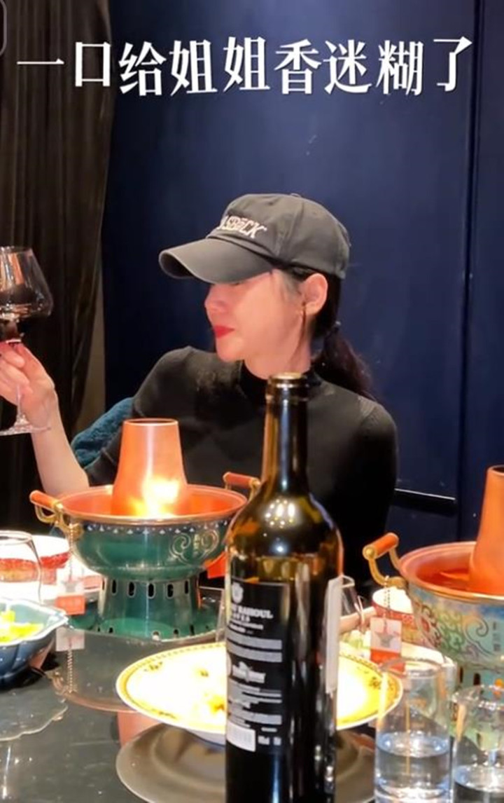 最有意思的是喝酒那段,秋瓷炫端着红酒杯跟团队碰杯,一杯接一杯喝得挺嗨。